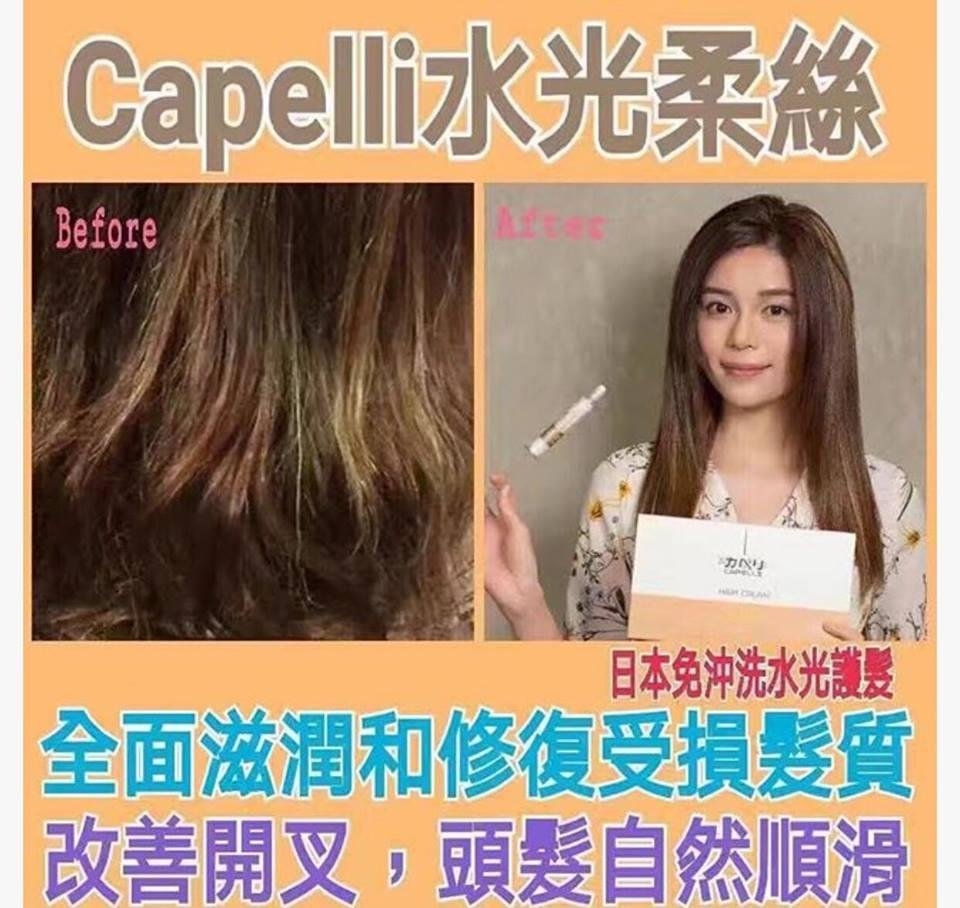 《Capelli》的高濃度蛋白養分同時由內至外改善頭髮乾燥問題,全面滋潤和修復受損髮質。現時在日本大人氣,屬Salon級別的專業免洗護髮精華。