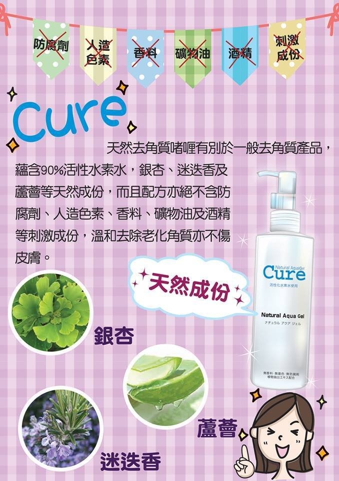積聚皮膚表面的老化角質,會阻擋護膚品吸收,令皮膚變得粗糙、暗啞、色素沉澱、妝容難以貼服,甚至阻塞毛孔形成粉刺、黑頭及暗瘡。Cure天然去角質啫喱,能為你帶走0.1mm的老化角質,而且不含多種刺激物,敏感皮膚亦可使用,只需一星期兩次,重回彈滑美白肌✨。