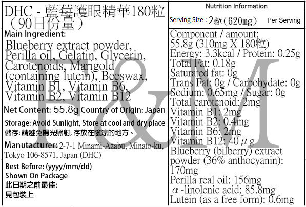 DHC - 藍莓護眼精華180粒(90日份量)