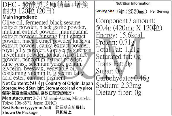 DHC - 發酵黑芝麻精華+增強耐力 120粒 (20日)(平行進口)