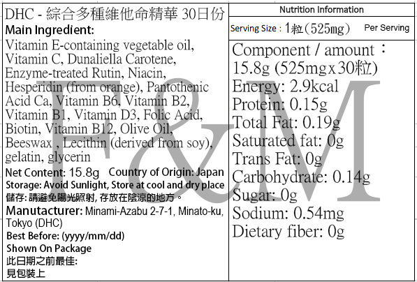 DHC- 綜合多種維他命精華 30日份