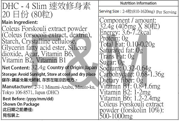DHC - 4 Slim速效修身素 (80粒)(20日份量)