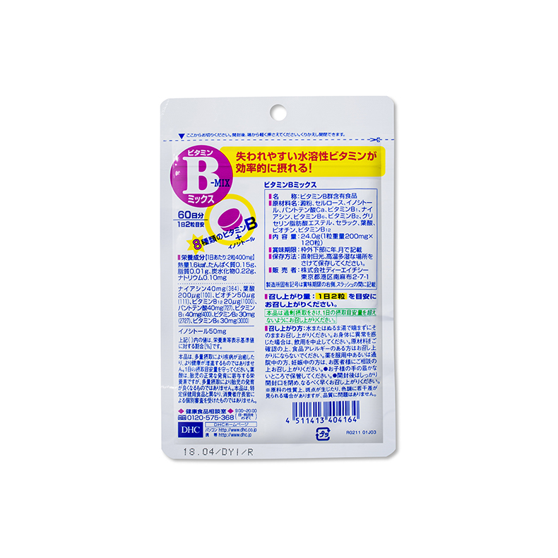 DHC維他命B群是以均衡比例添加維他命B1、B2、B6、B12、葉酸、泛酸、菸鹼酸、生物素、肌醇等9種營養素,有助於維持能量正常代謝,增進肌膚、神經系統、黏膜及消化系統的健康,每日攝取可常保充沛活力,讓您天天神采奕奕。
