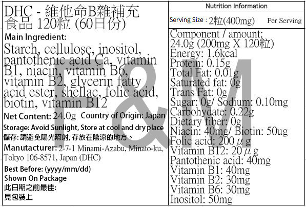DHC - 維他命B雜補充食品 120粒 (60日份)