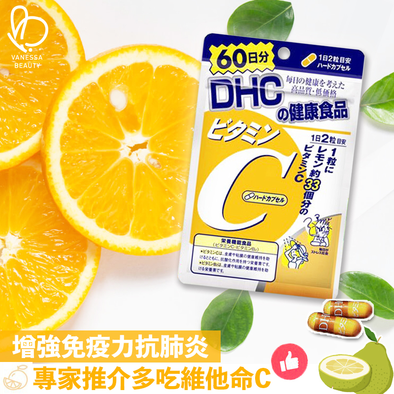 DHC維他命C每粒中含有500mg的高濃度維他命C,相當於33顆檸檬的維他命C含量,同時添加具有美容功能的維他命B2,是一款能夠創造青春活力及維持健康美麗的美容維他命。