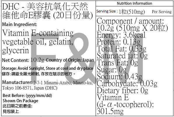 DHC - 美容抗氧化天然維他命E膠囊 20粒(20日份量)