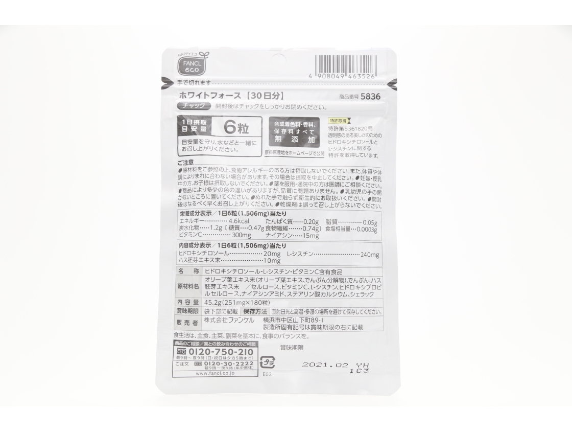 FANCL - (2019新版) 無添加亮白營養素美白丸 180粒 (30日份)