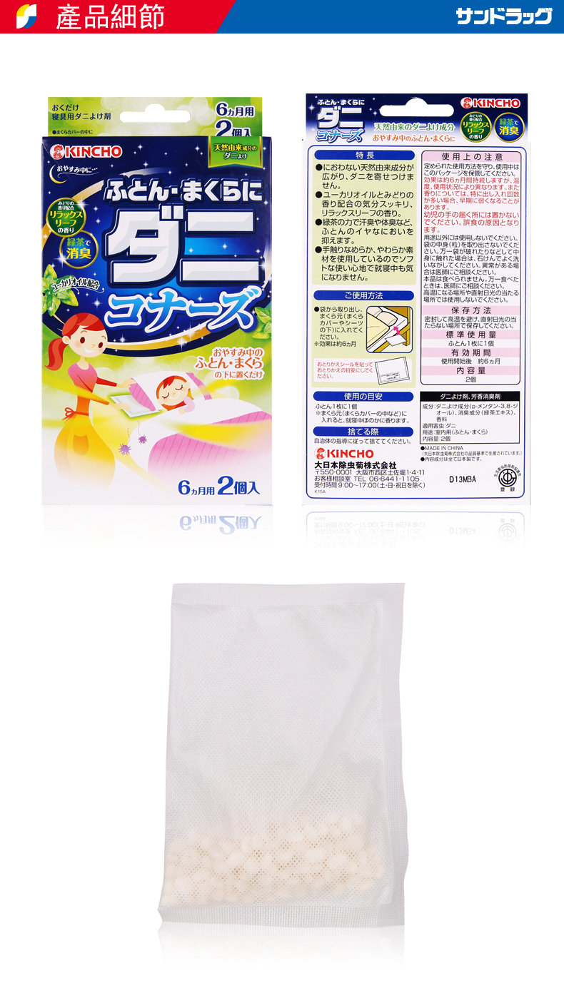 取出本商品(撕開透明外袋)放置於枕頭罩或被套內,效果約6個月。