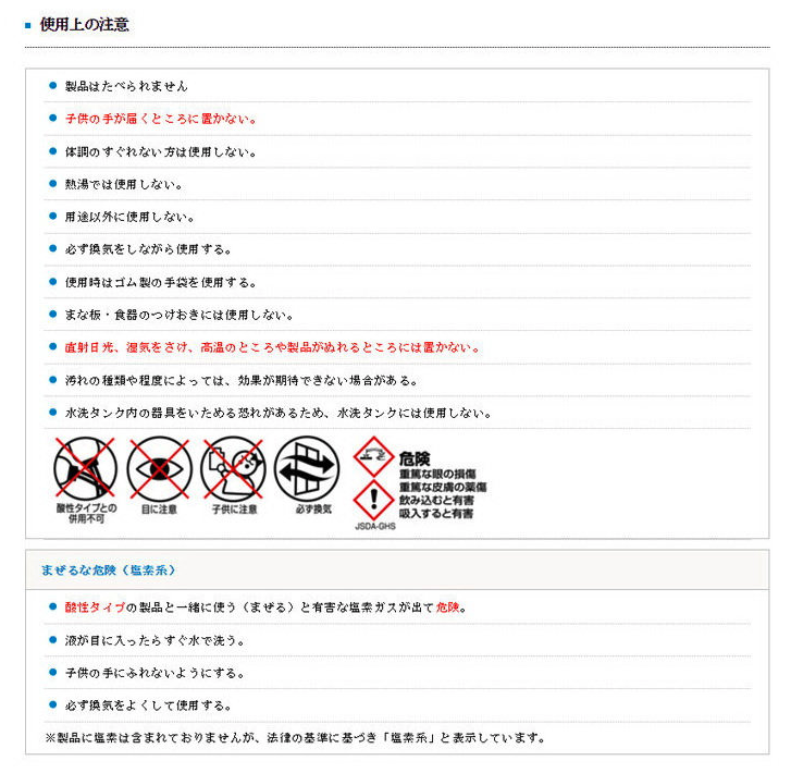 - 請勿將本品與酸性或鹼性液體混合使用,以免釋放有害氣體造成危險