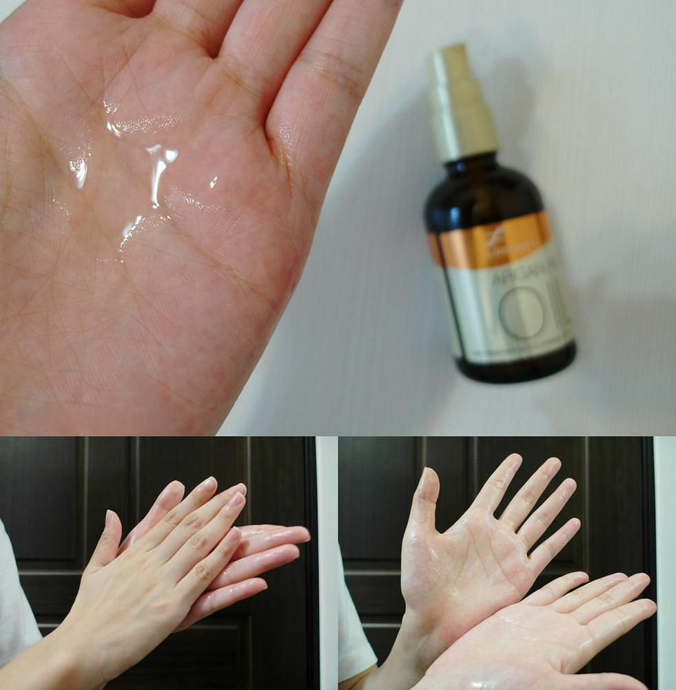 2. 每次取少量(按壓1-2次)於手心,揉搓開從頭髮中間開始向髮尾,由內至外的均勻塗抹。 (建議:中長髮按壓3次) *使用梳子可讓精華油更均勻塗抹於頭髮上。