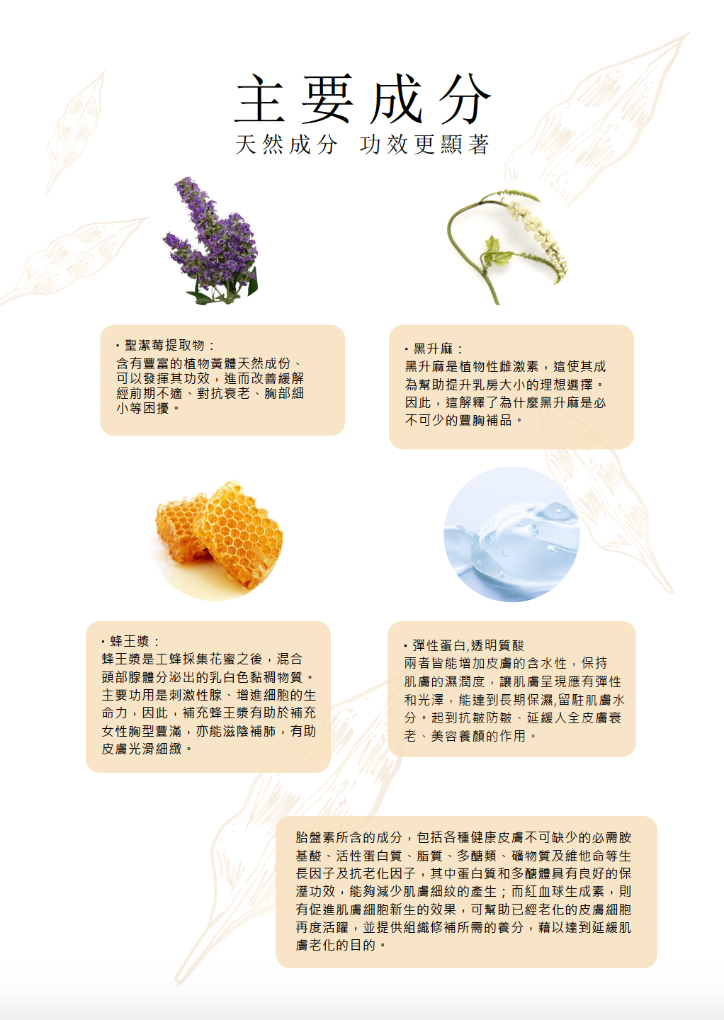 🔺添加胎盤素成份:激活未充份發育的乳房細胞
