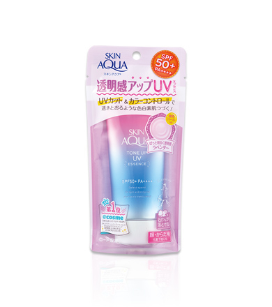 眾所周知對亞洲人的皮膚而言,藍色能提升皮膚的透明感,紅色則能令皮膚顯出好氣色,而樂敦製藥創意性地將這兩種顏色結合,得到了可令肌膚更顯白皙明亮的薰衣草色,將其應用在了Skin Aqua的這款防曬飾底乳中。