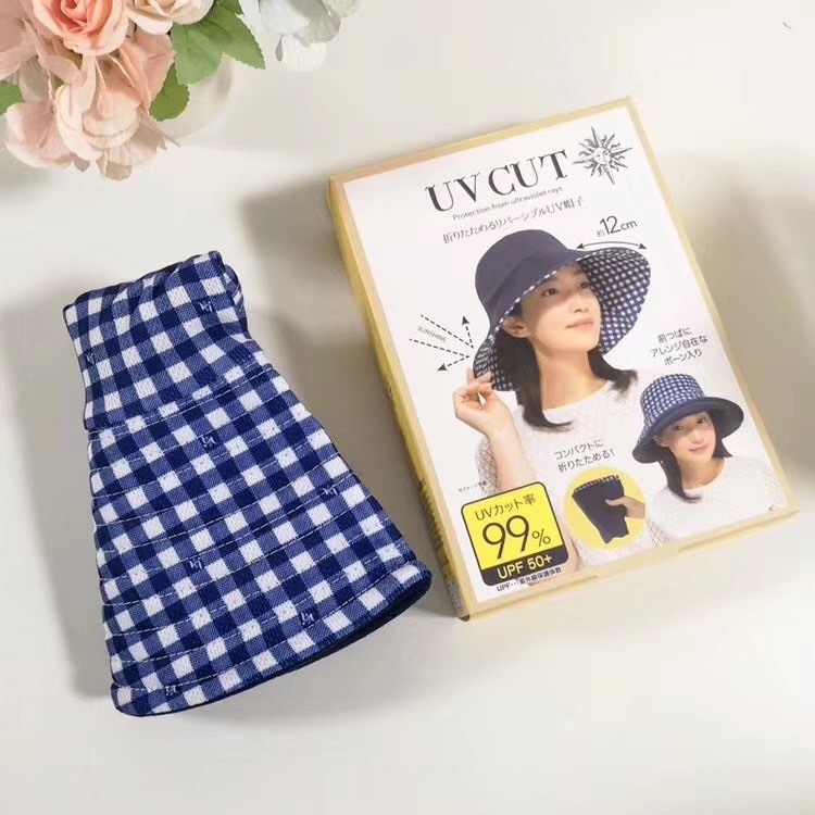 Sun Family - UV CUT 涼感可折疊抗UV雙面漁夫帽 (海軍藍x格子)(平行進口)