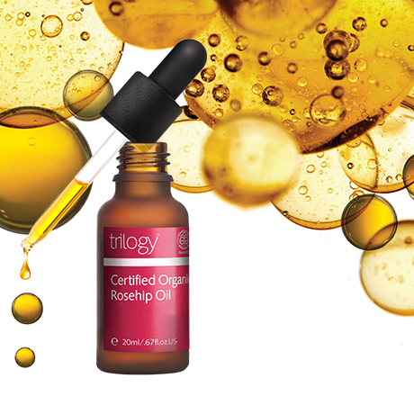 有機認證玫瑰果油是純天然的美肌植物油,含豐富Omega 3、Omega 6必需脂肪酸、維他命C、E (維他命C是黑加倫子的26倍) 及Tretinoin 維他命A酸(皮膚科醫生常用處方,醫學實證可減淡皺紋),可明顯改善各種肌膚問題,如乾燥缺水、膚色不均、肌膚老化,並可淡化疤痕、斑點、皺紋,改善粗糙肌膚,提高肌膚水潤度,令肌膚回復柔嫩年輕狀態。Trilogy 有機認證玫瑰果油經澳洲獨立研究所臨床測試,連續使用8-12週有效*:
